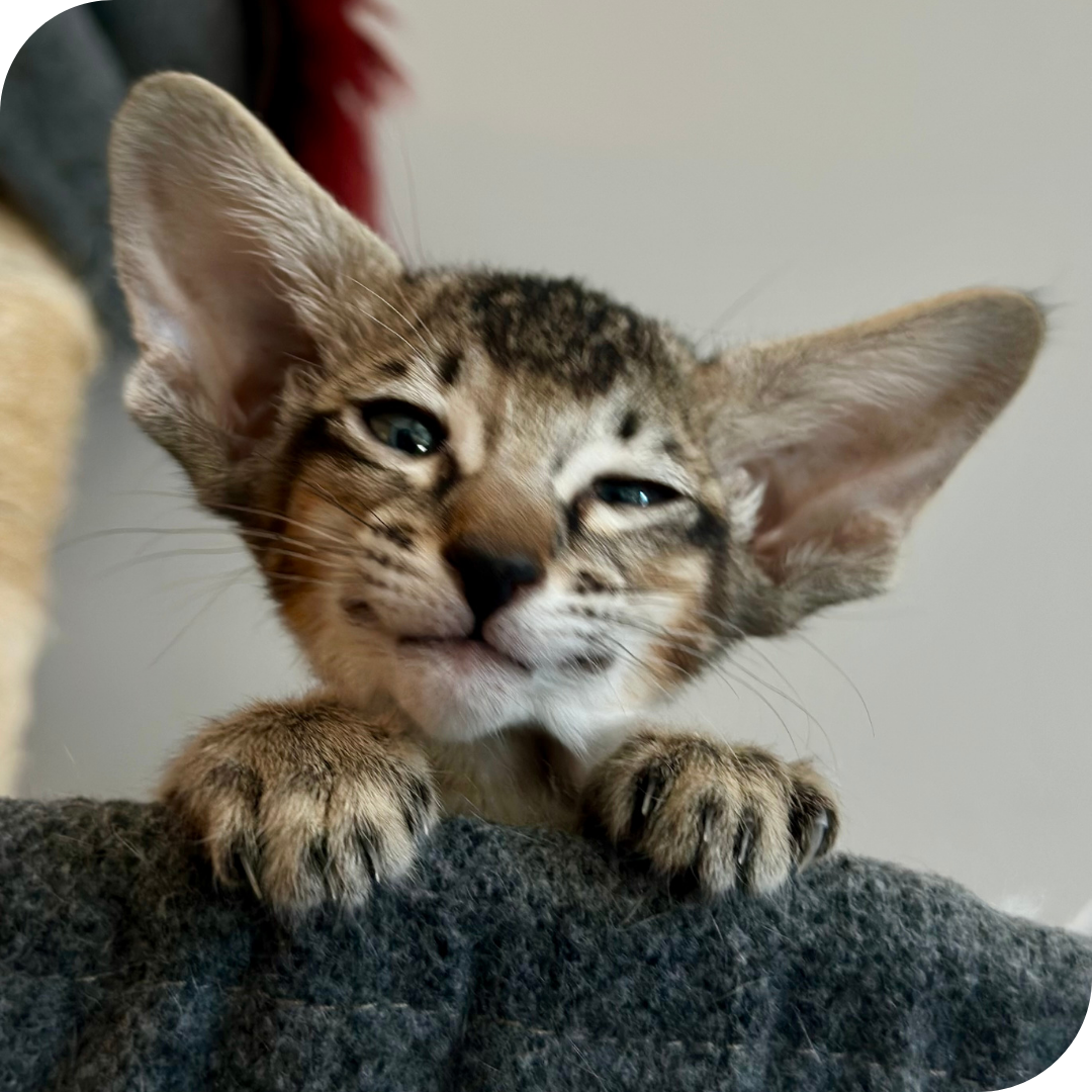Our Oriental Shorthair kittens are known for their sleek, elegant bodies, large expressive ears, and vibrant personalities. They are affectionate, intelligent, and love human companionship.