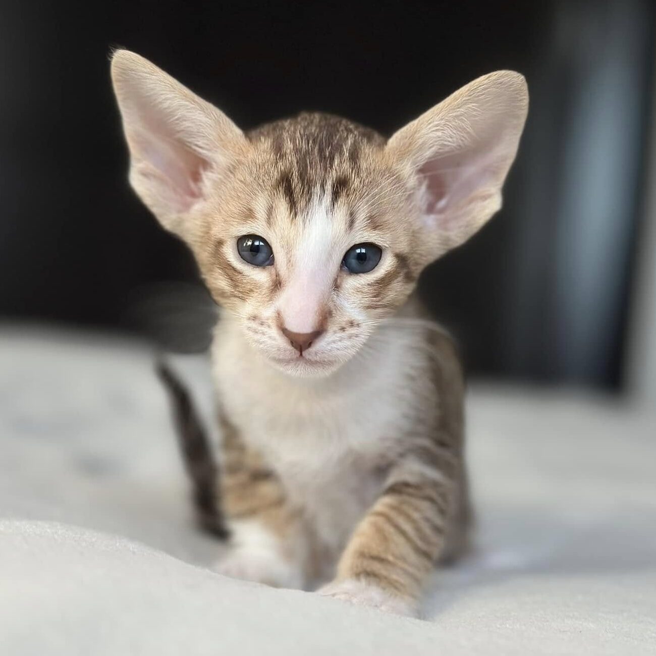 Our Oriental Shorthair kittens are known for their sleek, elegant bodies, large expressive ears, and vibrant personalities. They are affectionate, intelligent, and love human companionship.