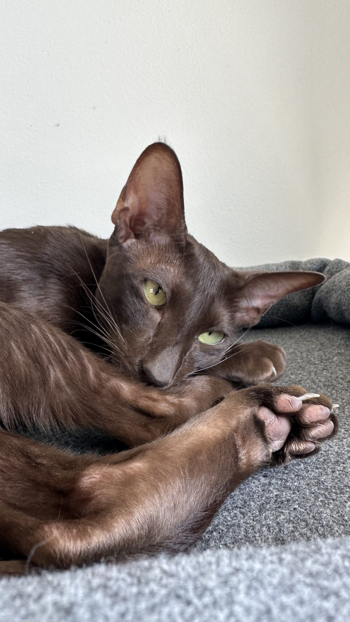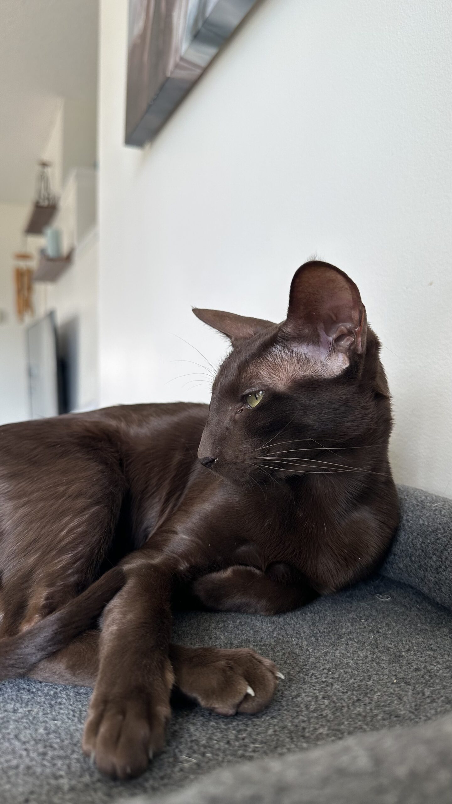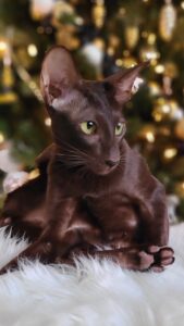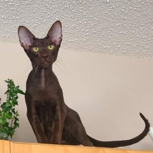 Yolandi holds a very special place in our hearts as the very first queen of Furriossa Cattery. A stunning chocolate Oriental Shorthair, she is the foundation of our breeding program and the proud mother of four beautiful litters.